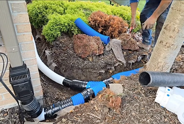 Professional buried downspout installation eliminates these problems by directing water safely underground, away from your foundation and landscaping permanently.